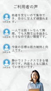 年齢や性別を考慮した一人ひとりに合わせたプログラム設計で、無理なく確実に理想の体へ。